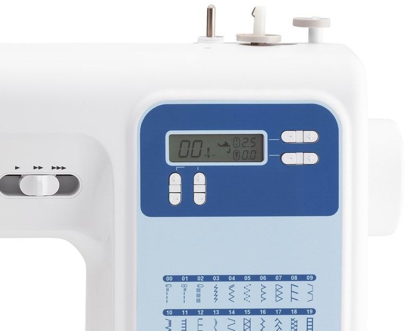 • 60 stitches • Needle threading system • Needle position key (sewing without foot controler) • Electronic speed control |