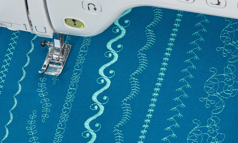 With 11.25” from needle to arm you can achieve anything you can imagine. From quilts to curtains, wedding dresses to bulky coats, there’s always space on the Stellaire Innov-is XJ1 to work quickly and comfortably.